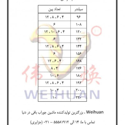 جدول راهنمای تعداد پین (پره) پشت اره، قابل استفاده برای سیلندرهای مختلف
