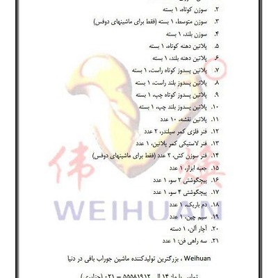 لیست قطعات جانبی رایگان همراه هر ماشین ویهوآن